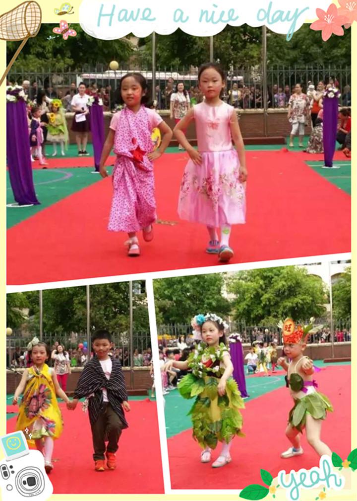 在活動中我們看到,家長、孩子齊動手,紙盒、編織袋、碟片、廢報紙、廣告紙、樹葉、花、藤、餐具、一次性桌布等都成為時裝的主要“面料”。真的是構(gòu)思巧妙、別具匠心!家長和孩子們穿著自己用廢舊物品制作的一套套造型迥異的環(huán)保時裝,全面展示自信與快樂,每個人都擺出了自己最帥的造型。他們的精彩表演給大家?guī)砹艘粓隽钊穗y忘的視覺盛宴。