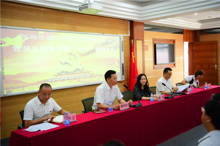 為紀念建黨 99 周年,全面貫徹黨的十九大精神,深入開展學習習總書記在全國“兩會”上的重要講話精神,堅持以習近平新時代中國特色社會主義思想為指導,深入貫徹習近平總書記對廣東重要指示批示精神,以實際行動為加快集團教育現(xiàn)代化、國際化建設提供堅強的組織保障和營造良好的社會氛圍。深圳市遠恒佳教育集團黨總支部于6月22日下午,開展了2020年第二季度黨員專題教育暨“七一”優(yōu)秀基層黨務工作者和優(yōu)秀共產(chǎn)黨員表彰活動。