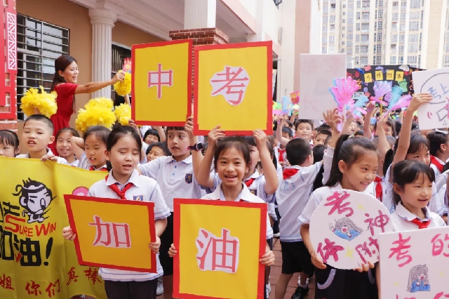 青春代表著熱血與戰(zhàn)斗,代表著無(wú)畏的精神。“請(qǐng)大家放心,我們一定會(huì)加油的!”九年級(jí)全體師生將所有祝福銘記心中,慷慨激昂地喊出了他們的承諾,也喊出了中考必勝的決心!