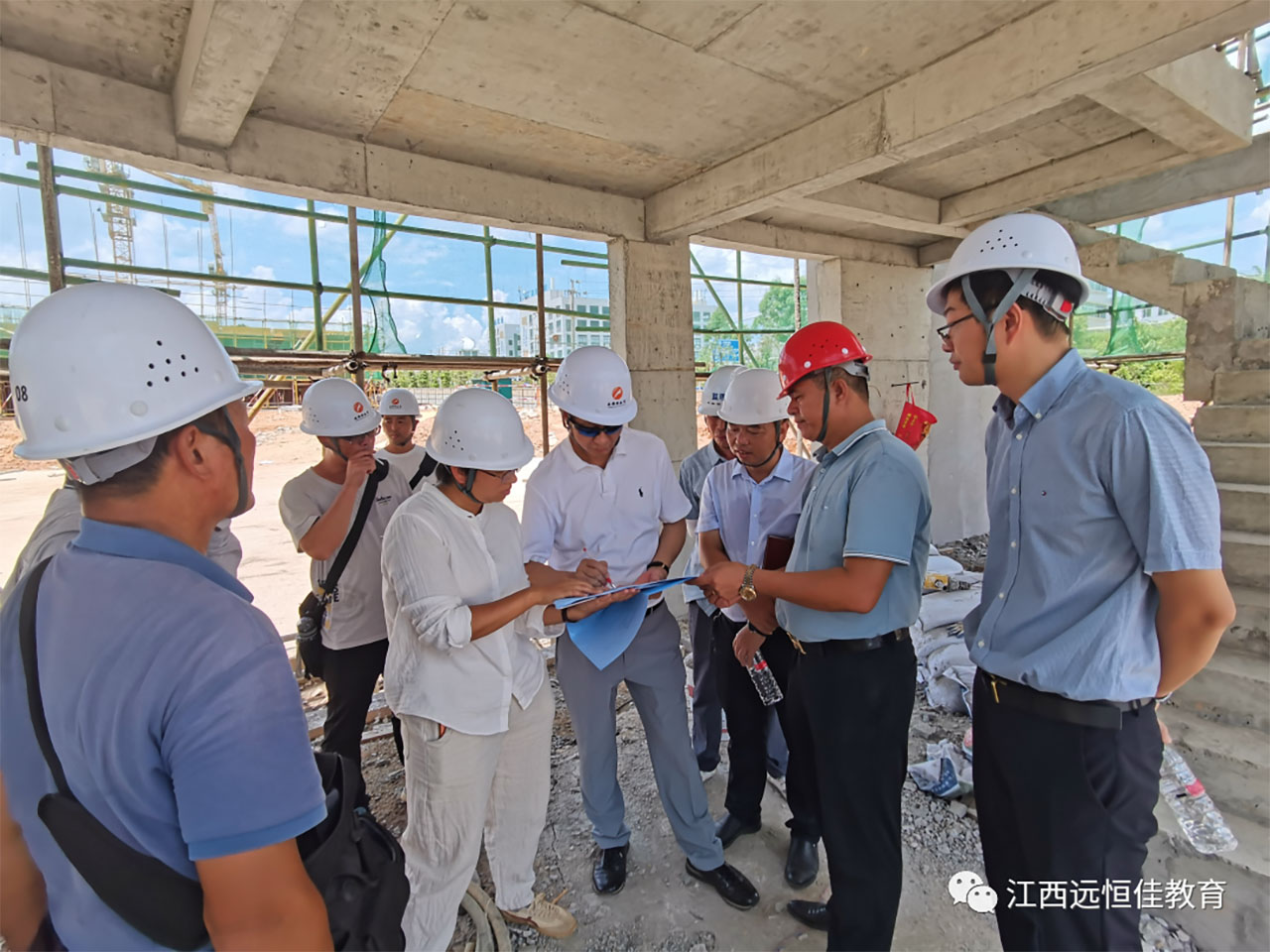 2022年8月15-16日,深圳市遠恒佳教育集團董事長宋遠標冒著酷暑蒞臨贛州遠恒佳職業(yè)學(xué)院項目施工現(xiàn)場視察工作,并召開工程項目推進會。贛州遠恒佳職業(yè)學(xué)院(籌)、建設(shè)單位、施工單位、監(jiān)理公司及項目工程部負責(zé)人陪同考察及參會。