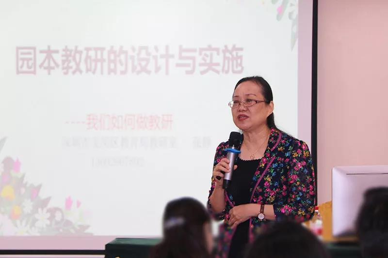 龍崗區(qū)教育局教研室幼教教研員張靜老師在一天的時間里與老師們分享和交流《園本教研的設計與實施》。張靜老師首先與老師們親切交流,了解寶安幼教集團各幼兒園園本教研的現狀、存在的問題、有哪些困惑?針對老師們的困惑和問題,張老師從教研有哪些形式(個人反思、同伴互助、專業(yè)引領)、園本教研的涵義與基本要素、園本教研八字箴言(察、思、鉆、備、討、升、跟、理)、園本教研的設計流程等方面與老師們進行交流、分享。
