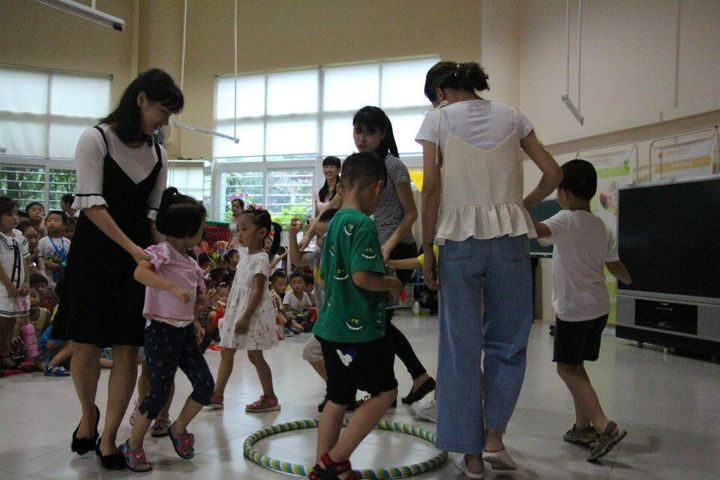抱團(tuán)游戲:《月圓家園事事圓》。在活力十足的游戲音樂中,老師和小朋友們大手緊緊牽著小手繞著圈圈走,在主持人出其不意的報(bào)數(shù)聲中,老師和小朋友們默契十足迅速跳入圈圈里緊緊抱在一起!