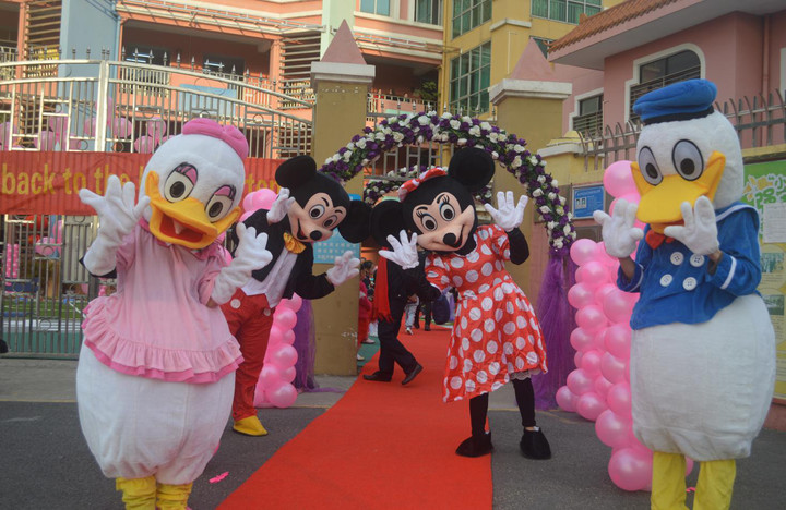 7:30開學典禮就正式開始啦!在老師們、卡通人物的迎接下,家長與寶寶們伴隨著歡快的音樂,快樂的歡呼起來;用互動的方式開啟了一系列的環(huán)節(jié):