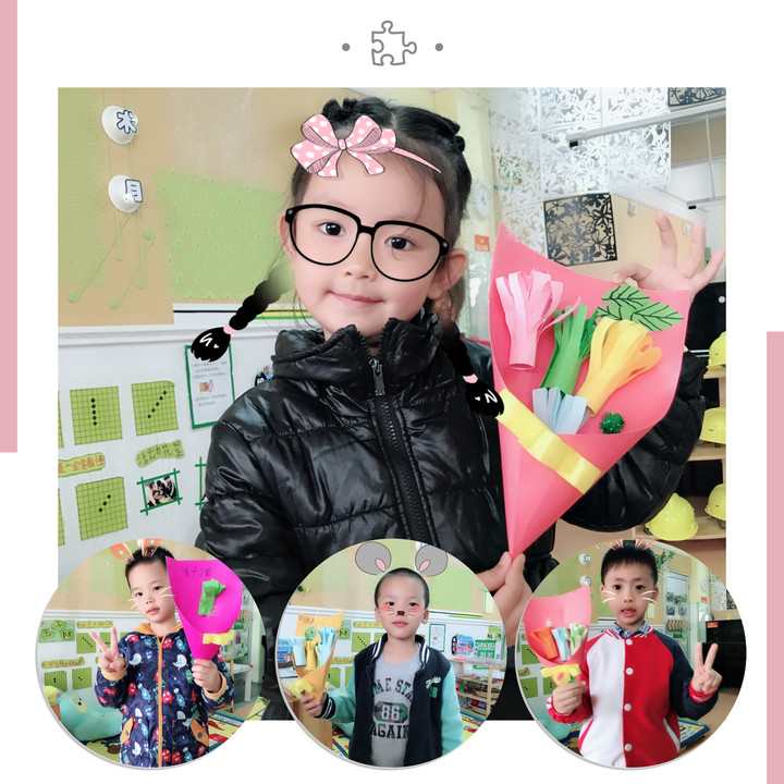 “祝我們的女神麻麻節(jié)日快樂!”這應該是寶貝們期待今天最想說的話了?;顒娱_始后,因為是要送給媽媽的禮物,所以大家非常認真,從剪紙、粘貼到最后老師幫忙裝飾,每個細節(jié)都小心翼翼,生怕做出不完美的作品。一張張笑靨如花的孩子們手捧親手制作的花,將愛盡情地展現(xiàn)出來,即使只是一個拍照時的小動作,也會帶給我們快樂,讓這無憂無慮的小時代在延續(xù)著。