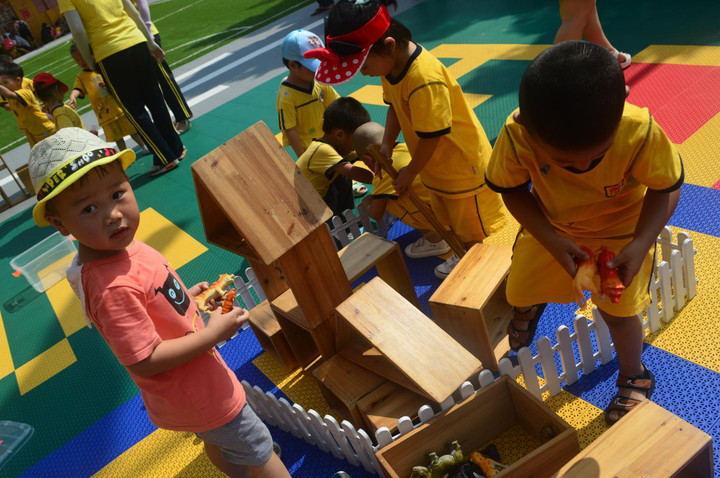 戶外游戲區(qū)——積木區(qū),大家來(lái)看看我們小城堡!