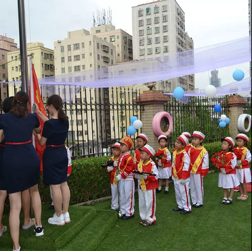 莊嚴(yán)的旋律奏響了孩子們心中的愛國之情,鮮艷的五星紅旗在小旗手的手中冉冉升起。