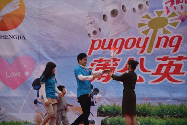 運(yùn)動(dòng)會(huì)的圣火已經(jīng)點(diǎn)燃,從園長(zhǎng)媽媽手中接遞的是櫻桃B班代表蔡鎧霖一家