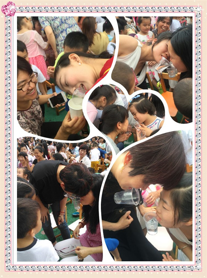 每人咬住一個(gè)水杯,只能用嘴將杯子中的水倒給下一位,最后杯中水剩下最多的一組為勝利組,將會獲得精美小禮物。