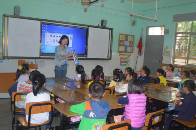 瞧!李老師在給我們介紹實(shí)驗(yàn)班哥哥姐姐豐富的第二課堂:口風(fēng)琴......
