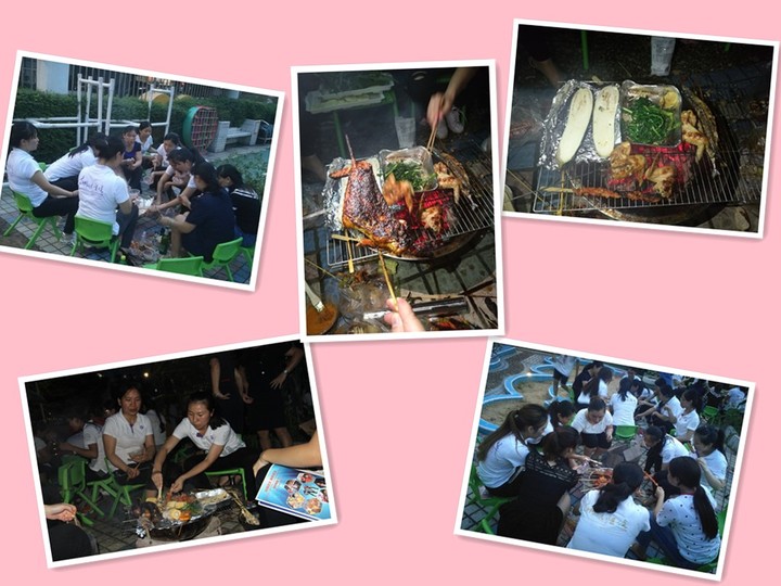 夢(mèng)想是石,敲出星星之火;夢(mèng)想是火,點(diǎn)燃熄滅的燈;夢(mèng)想是燈,照亮夜行的路,夢(mèng)想是路,引你走向黎明。夢(mèng)想,是我們飛翔的翅膀,伴隨我們開(kāi)始踏上新的征程,2017年6月23日遠(yuǎn)恒佳花園幼兒園全體教職工歡聚在一樓大操場(chǎng)共同迎來(lái)上半年教職工生日會(huì),本次生日會(huì)共有25位壽星,在活動(dòng)中老師們自己動(dòng)手生火、自己烤食物,雖然燒烤經(jīng)驗(yàn)不足常會(huì)有烤焦的現(xiàn)象,在活動(dòng)過(guò)程中不時(shí)有惋惜的聲音出現(xiàn)“哎呀,我的火腿腸又烤黑了”、“哎呀,我的雞翅著火了”,當(dāng)然也有一些燒烤高手在旁邊為不會(huì)燒烤的老師們服務(wù),讓她們也能享受美食的美味。伴隨著一首《有你真好》壽星們一起手拉手共同歡慶在一起的美好時(shí)刻,一起圍成圓圈唱生日歌、許愿,愿所有的壽星們心如所愿。本次自主燒烤生日會(huì)活動(dòng)的舉辦增強(qiáng)團(tuán)隊(duì)的凝聚力,體現(xiàn)以人為本的管理文化,加強(qiáng)與員工的溝通,進(jìn)一步激發(fā)員工的工作熱情,增強(qiáng)員工歸屬感,豐富員工生活。下面讓我們一起回顧這美好的時(shí)刻吧!