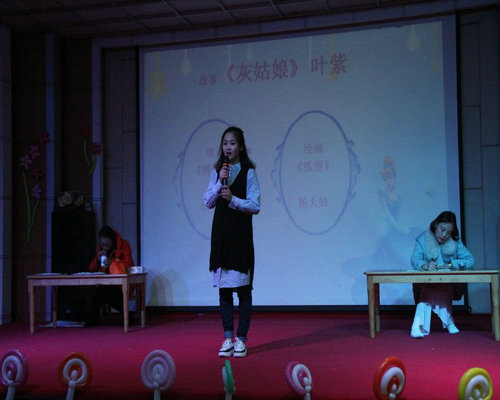 實驗園葉老師講故事《灰姑娘》,配孫老師和楊老師的繪畫作品《繡球花》和《狐貍》。