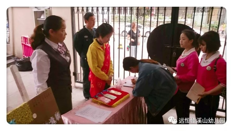 8:20,我園以熱情飽滿的狀態(tài),迎接本次參加觀摩活動的新圍國育第一幼兒園園長、教學(xué)主任、班主任老師一行11人