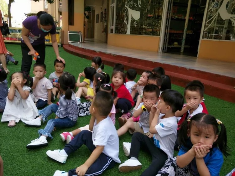 進(jìn)行消防演練前,幼兒園就像往常一樣開展各種活動(dòng)。上午11點(diǎn),隨著一陣急速的“笛”聲響起,各班老師聽到警鈴聲后迅速放下手頭工作,三位老師協(xié)調(diào)分工并立即帶領(lǐng)孩子們用手捂住口鼻,彎腰小步快走,分兩道樓梯有序地按規(guī)定路線到達(dá)指定的逃生安全區(qū)域。