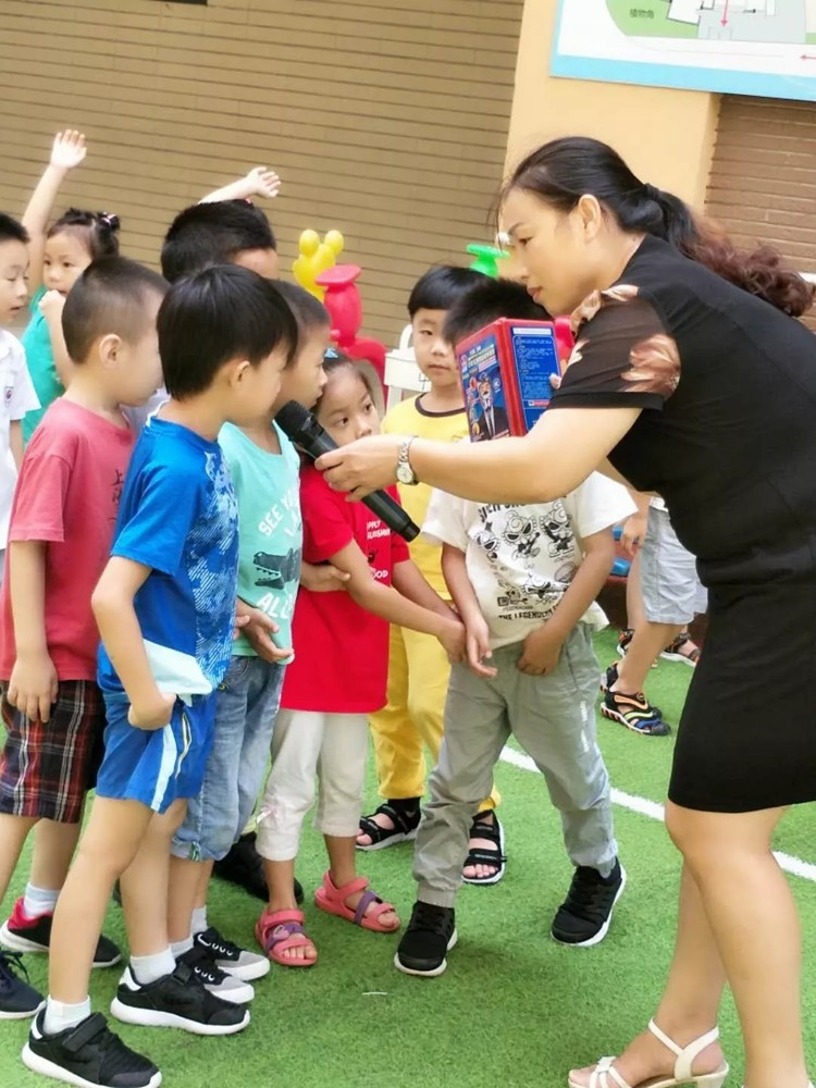 “我認(rèn)識,這是防毒面具”,幼兒在張主任的講解下積極互動(dòng),爭先講述自己知道的消防知識。