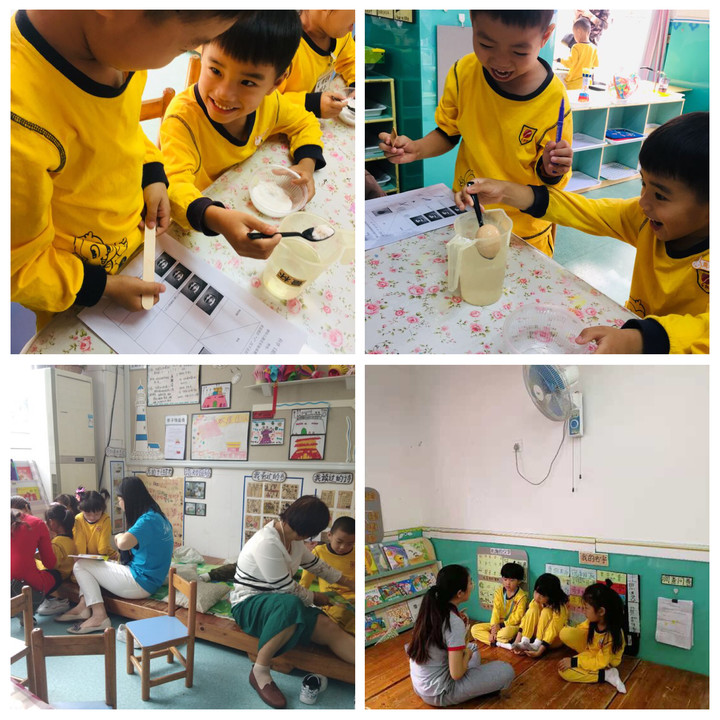 接著,教師帶領(lǐng)幼兒回到教室,進(jìn)行入廁、換衣服、洗漱和水果分享。然后開始了豐富的區(qū)域活動(dòng),積木搭建、區(qū)域英語、美工等有趣的活動(dòng)。