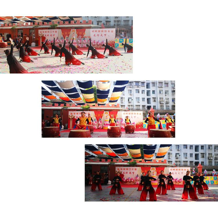 二幼的老師是一道耀眼的光環(huán),美麗又可愛的她們帶來的中國鼓和舞蹈《書簡舞》,正以歡快律動向我們傳遞運(yùn)動的概念。它濃縮著中國文化精神,顯示著中華民族之魂,是永恒的生命躍動。