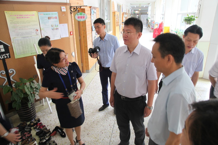 2017年5月5日上午10:00,龍華區(qū)區(qū)委常委、區(qū)政府黨組成員馬里,龍華區(qū)教育局副局長(zhǎng)諶葉春,龍華區(qū)教育局干部江堅(jiān)一行,在深圳市遠(yuǎn)恒佳教育集團(tuán)董事長(zhǎng)宋遠(yuǎn)標(biāo)、集團(tuán)董事長(zhǎng)助理戴桓標(biāo)、龍華中英文實(shí)驗(yàn)學(xué)校幼兒園孔令波園長(zhǎng)的陪同下,調(diào)研考察了龍華中英文實(shí)驗(yàn)學(xué)校幼兒園,詳細(xì)了解了該幼兒園辦學(xué)情況。