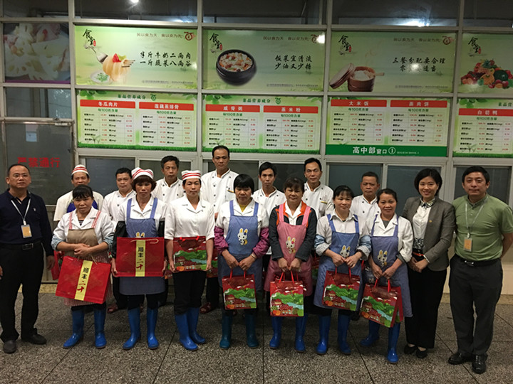 學(xué)校上級部門,深圳市遠(yuǎn)恒佳教育集團(tuán)還成立了后勤服務(wù)公司,聘用專門的管理及技術(shù)人才對全集團(tuán)(包括龍華中英文實(shí)驗(yàn)學(xué)校)進(jìn)行食堂強(qiáng)化管理、提高食堂服務(wù)質(zhì)量,每月還會(huì)對下屬校、園食堂進(jìn)行評比。我校在集團(tuán)進(jìn)行的專業(yè)、嚴(yán)格的評比中,多次被評為優(yōu)秀食堂。