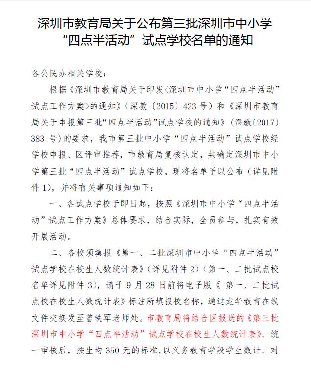 喜報(bào):龍華中英文實(shí)驗(yàn)學(xué)校經(jīng)龍華區(qū)、深圳市評(píng)審?fù)ㄟ^(guò),確定為“第三批深圳市中小學(xué)‘四點(diǎn)半活動(dòng)’試點(diǎn)學(xué)?!?!