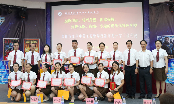 深圳市遠恒佳教育集團創(chuàng)始人、董事長、黨總支書記宋遠標先生在會上發(fā)表了重要講話。他肯定了在過去三年中,學(xué)校在全國名校長、特級教師、學(xué)校卜祥林校長的帶領(lǐng)下,通過推進“小班化高效課堂改革”、建設(shè)“美好教育”,學(xué)校在立德樹人、教育教學(xué)、學(xué)校品牌建設(shè)中取得了卓著的成就,義務(wù)教育階段參加區(qū)調(diào)考、中考成績已躋身全區(qū)公民辦前列,高考實現(xiàn)了100%的升學(xué)率,良好的成績得到了上級主管部門、社會各界和家長朋友的廣泛認可。同時強調(diào),在今年暑假投入500萬元的基礎(chǔ)上,在接下來的幾年中,要再加大力度,進一步優(yōu)化學(xué)校環(huán)境,提高教職員工待遇,建設(shè)智慧校園,把學(xué)校建設(shè)成為一流的教育品牌。同時指出,新的起點、新的征程,給每一位龍華中英文干部、教職工提出了更高的要求,要教育培養(yǎng)好每一位龍華中英文學(xué)校的學(xué)生,要繼續(xù)發(fā)揮學(xué)校教育及教學(xué)質(zhì)量優(yōu)勢,進一步提升中、高考成績,努力培養(yǎng)未來精英人才。最后,用“千秋大業(yè)、謙和共建、牽手圓夢”勉勵大家,為教育事業(yè)做出更大的貢獻。