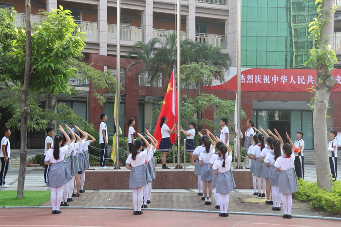 2019年9月30日,深圳市龍華中英文實驗學(xué)校舉行了題為“我與祖國共奮進”的主題升旗儀式,全體師生員工在運動場上莊重參加儀式,齊唱《我和我的祖國》,共同隆重慶祝中華人民共和國成立70周年,奏響禮贊新中國、奮進新時代的主旋律,深入開展愛國主義教育。