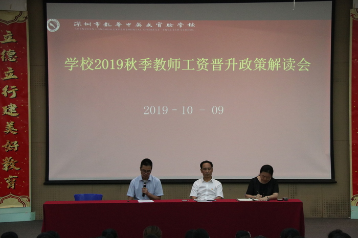2019年10月9日,學(xué)校召開了本學(xué)期第二次全體干部、教師大會,進行了師德、“創(chuàng)文”、安全等方面的培訓(xùn),同時對2019-2020學(xué)年教師工資晉級方案進行了解讀,會議由金玉善副校長主持。