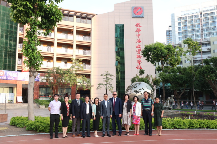 2019年11月7-8日,美國名校索斯蘭學(xué)校校董Mr.Duncan Glenn Thomas 鄧肯?格倫?托馬斯,學(xué)生個(gè)性發(fā)展部主任Mrs. Holly Carol Duncan 鄧肯?霍利?卡羅爾,學(xué)生發(fā)展部總監(jiān)Ms.Jane Zhu,中國區(qū)代表王新海主任等一行來到深圳市遠(yuǎn)恒佳教育集團(tuán)參觀訪問,遠(yuǎn)恒佳教育集團(tuán)創(chuàng)始人、董事長、黨總支書記宋遠(yuǎn)標(biāo)先生,副總裁麥麗芬女士,總校長畢國軍博士,龍華中英文實(shí)驗(yàn)學(xué)校周興國校長、金玉善副校長,公明中英文學(xué)校周文霞副校長,遠(yuǎn)恒佳國際教育中心宋騰部長等集團(tuán)以及下屬學(xué)校領(lǐng)導(dǎo)進(jìn)行了接待,并參加座談會進(jìn)行了深入的研討。