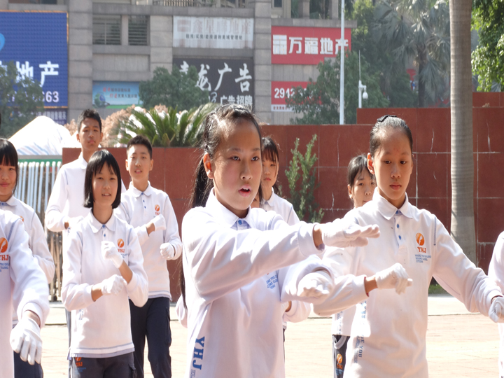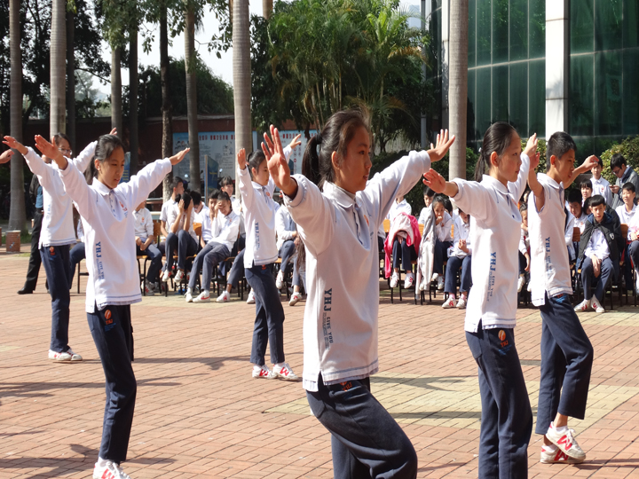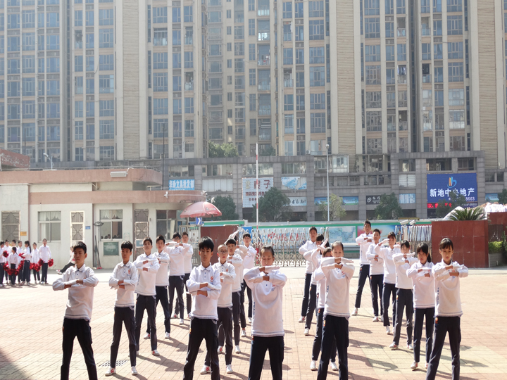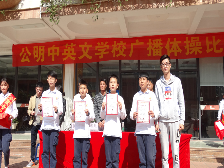 2016年12月1日10:00整,公明中英文學(xué)校初中部在教學(xué)樓前舉行了盛大的廣播操比賽。
