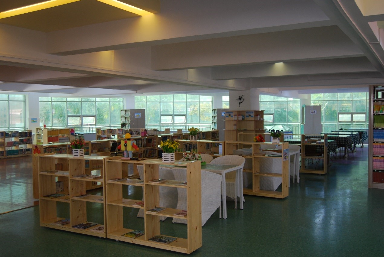 公明中英文2013年投資100余萬(wàn)元率先在光明新區(qū)建立校園開(kāi)放式圖書(shū)館,在教師中選派兩位經(jīng)驗(yàn)豐富的英語(yǔ)、語(yǔ)文老師做為專(zhuān)職圖書(shū)管理員,為孩子的閱讀提供專(zhuān)業(yè)系統(tǒng)的指導(dǎo)。圖書(shū)館內(nèi)設(shè)藏書(shū)區(qū)、電子閱覽區(qū)、休閑閱讀區(qū)和交流展示區(qū),從早上8點(diǎn)到晚上8點(diǎn)全天侯開(kāi)放,師生可隨時(shí)在里面查閱資料、休閑閱讀或進(jìn)行閱讀展示。同時(shí),在教學(xué)樓的每層連廊、每個(gè)教室和學(xué)生宿舍樓都裝備有公共閱覽區(qū)或圖書(shū)角,保證學(xué)生可以隨時(shí)隨地取閱圖書(shū)。