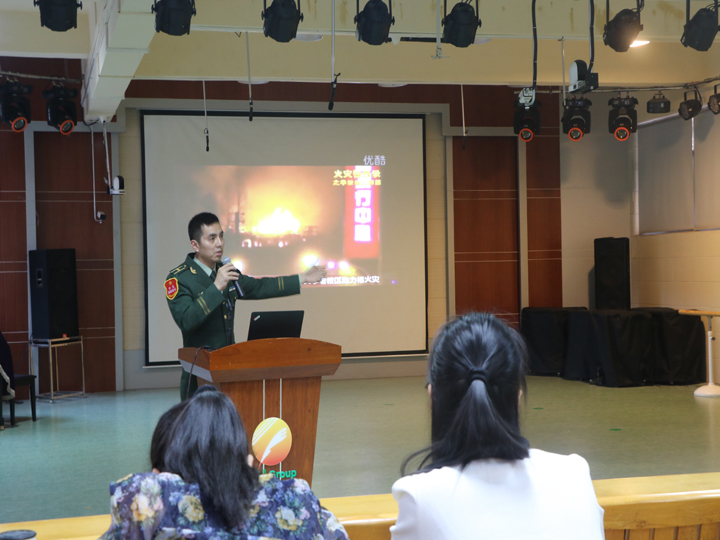 彭隊(duì)長(zhǎng)先放幾段發(fā)生火災(zāi)的視頻,接著舉深圳各區(qū)發(fā)生的火災(zāi)具體的案例,用專業(yè)的角度分析,說(shuō)明遇到火災(zāi)時(shí)如何逃生自救進(jìn)行,提出九鐘策略,教會(huì)老師如何面對(duì)火災(zāi),教會(huì)老師學(xué)會(huì)逃生。