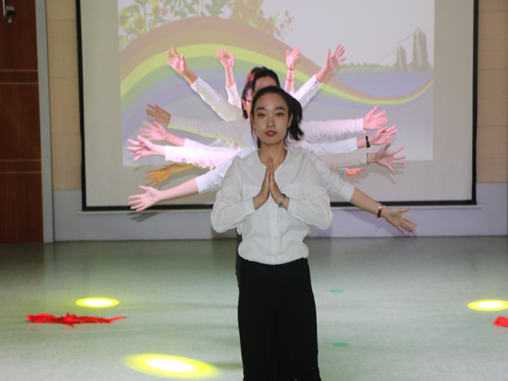 活動(dòng)在一場(chǎng)T臺(tái)秀中拉開(kāi)序幕,沒(méi)有華麗的服飾,沒(méi)有炫彩的妝容,但十多位女教師用職業(yè)裝在舉手投足間展現(xiàn)出良好的精神面貌和職業(yè)素養(yǎng),贏得了滿堂喝彩。接著,唱歌、舞蹈、輪滑、悠悠球,一個(gè)個(gè)讓人驚幸喜的節(jié)目輪番上臺(tái),這些平時(shí)溫文爾雅,在工作中默默奉獻(xiàn)的老師展現(xiàn)了他們多才多藝的另一面,讓觀眾大開(kāi)眼界。語(yǔ)文老師廖義玲的風(fēng)手琴獨(dú)奏《啊朋友再見(jiàn)》,琴聲婉轉(zhuǎn)連綿、曲折優(yōu)美,讓觀眾體驗(yàn)到意大利民歌的豪放與壯闊。體育老師陳代坤現(xiàn)場(chǎng)書(shū)法大鵬展翅,讓人體驗(yàn)到力與美的結(jié)合。還有美術(shù)老師何倫,僅用四分鐘的時(shí)間便用彩紙折出一束"鮮花“,有百合、郁金香、玫瑰…,栩栩如生、美侖美奐。最讓人拍案叫絕的是老師們自編自演的兩個(gè)節(jié)目“雙簧”和小品“我為海選狂”,演員們表演到位、笑點(diǎn)頻出,整場(chǎng)讓人捧腹不止,眾望所歸地被評(píng)為一等獎(jiǎng)。