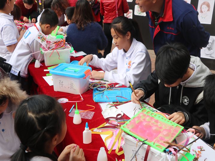 本次展示,第一大特點是采用分年段交叉展示(一二年級為一學段,三至七年級為一學段),雖忙碌,但大家樂在其中。