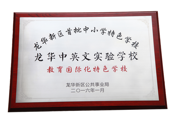 深圳集團、學校近三年的研究及探索,深圳市龍華中英文實驗學校國際化特色建設成績斐然,2016年01月,深圳市龍華中英文實驗學校獲得“龍華新區(qū)國際化特色學?!睒s譽稱號。