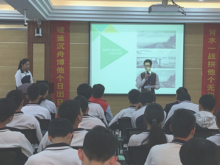 接下來教師代表劉德志老師發(fā)言:“最后一百天,為了每位學(xué)生的理想,我們2017屆全體高三教師將:忠于職守,以身作則;樂于奉獻(xiàn),刻苦鉆研;穩(wěn)扎穩(wěn)打,科學(xué)備考;嚴(yán)實(shí)精細(xì),精益求精;精誠團(tuán)結(jié),榮辱與共!”