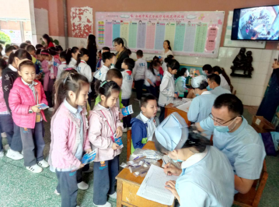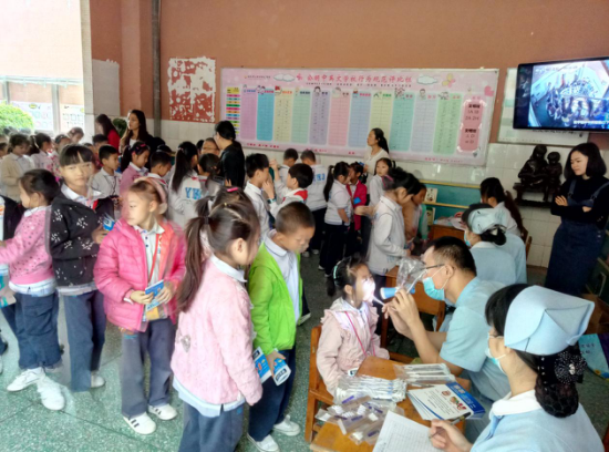 檢查過程中,學(xué)生在班主任的帶領(lǐng)下,在后勤劉冬偉主任和一二年級熊會容主任指揮領(lǐng)導(dǎo)下,以班級為單位有序的進(jìn)行口腔檢查活動。醫(yī)護(hù)工作人員也非常仔細(xì)認(rèn)真的對每一位學(xué)生進(jìn)行口腔檢查和登記,并給學(xué)生發(fā)放了《免費(fèi)窩溝封閉預(yù)防齲齒》宣傳單及《窩溝封閉,遠(yuǎn)離齲齒—致家長的一封信》,為后續(xù)免費(fèi)為適齡兒童做窩溝封閉奠定了良好的基礎(chǔ)。