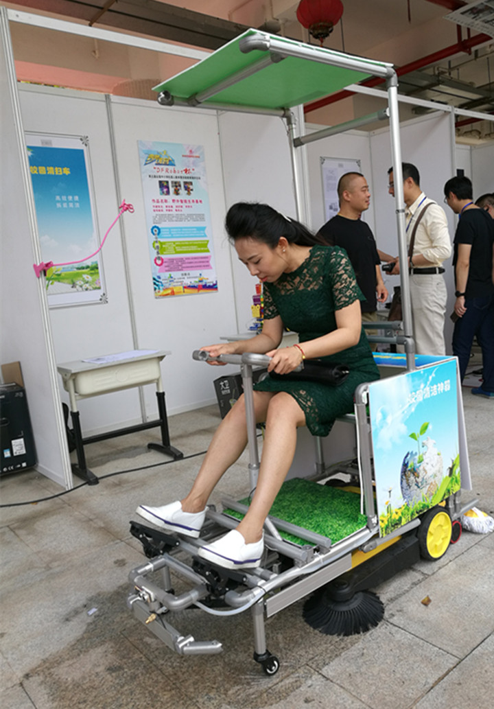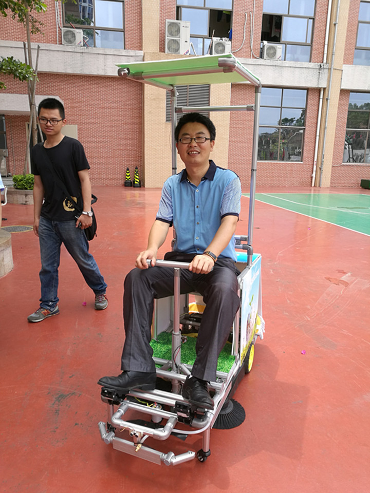 因為龍華中英文實驗學校是深圳大學授牌的《FEG智能無人車》創(chuàng)客實踐基地,作品制作過程中,運用的工程結構、3D設計、Arduino編程、激光切割等技術得到了深圳大學的相關老師與技術指導,該車可以支持有人駕駛及手機遠程無人控制等?!缎@清掃車》可以實現(xiàn)校園落葉垃圾清掃、室內球場的托地清潔、足球場草坪修剪、太陽能充電等功能。是一項節(jié)能、環(huán)保、多功能的創(chuàng)客作品。