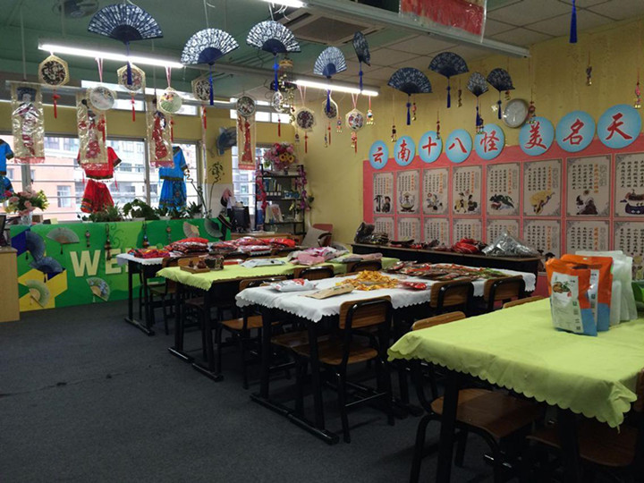 “地域文化創(chuàng)設(shè)評(píng)比”內(nèi)容,國際班每班選擇一個(gè)省份(班際間不重復(fù)),以飲食文化為核心,配以相關(guān)的風(fēng)土人情展示,采用彩打圖片、繪畫、實(shí)物展示或模型等布展進(jìn)行班級(jí)文化布置。2017年5月16日,學(xué)部領(lǐng)導(dǎo)金玉善副校長、學(xué)部張丹、馬定云德育領(lǐng)導(dǎo),年級(jí)主任羅賢娟、馮潔萍、歐陽新建、王紅領(lǐng)老師等評(píng)審組成員對(duì)各班的“地域文化創(chuàng)設(shè)”進(jìn)行檢查評(píng)比。