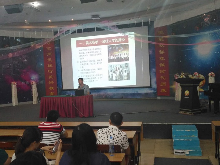 2017年9月28日晚上19:30,遠(yuǎn)恒佳國(guó)際教育城遠(yuǎn)方美術(shù)中心劉明登主任;教育城六藝傳媒項(xiàng)目負(fù)責(zé)人劉孟子老師前往龍華中英文實(shí)驗(yàn)學(xué)校出席了高中部高一新生家長(zhǎng)會(huì)。本次會(huì)議劉明登主任為高一新生家長(zhǎng)詳細(xì)介紹了高中美術(shù)高考工作相關(guān)事宜,有助于高一學(xué)生在高中階段提前為高考專業(yè)做出選擇。六藝傳媒劉孟子老師給家長(zhǎng)朋友們分享了今年傳媒高考的驕人成績(jī),為傳媒項(xiàng)目招生工作打下了良好的基礎(chǔ)。對(duì)于高考專業(yè)的選擇,家長(zhǎng)朋友們的各種疑問(wèn)在會(huì)上一一得到了專業(yè)的解答,且對(duì)我們的高考實(shí)力項(xiàng)目表示肯定。