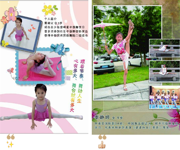 學(xué)員在集體活動(dòng)中的點(diǎn)滴進(jìn)步和突出表現(xiàn),要發(fā)揮榮譽(yù)的激勵(lì)作用,這對(duì)孩子參與更多的活動(dòng)有很大的激勵(lì)作用,這些東西能夠幫助孩子形成強(qiáng)烈的榮譽(yù)感,能夠成為孩子參與活動(dòng)的無(wú)形動(dòng)力。所有成功的背后都是苦苦的堅(jiān)持,只要你愿意、只要你努力、只要你堅(jiān)持,總有一天你也會(huì)成為明星哦!