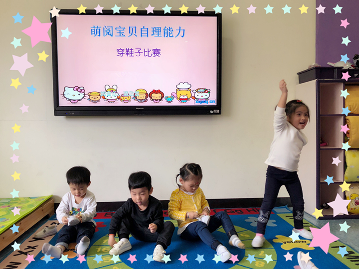 在一片加油聲和歡笑聲中,穿鞋子比賽圓滿結束!本次穿鞋子的比賽,培養(yǎng)和提高了寶貝們的獨立性和自信心的增強。通過學習、參與、訓練,有利于他們動作協(xié)調性的發(fā)展,還有助于他們養(yǎng)成獨立自信,不依賴成人的性格。過程中,老師給予適當?shù)墓膭?,樹立孩子的自信心,讓孩子懂得自己的事情自己做。孩子在提高能力的同時,也培養(yǎng)了勇于面對困難,敢于克服困難的良好品質!