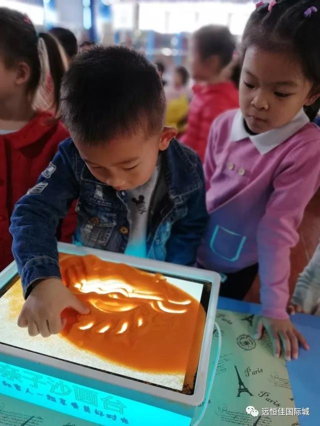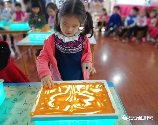 這是小朋友們第一次接觸沙畫哦!看,普通的一捧沙子,到了小朋友的手里,就變成了各種有趣的圖案