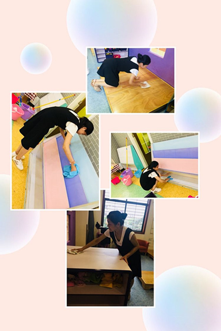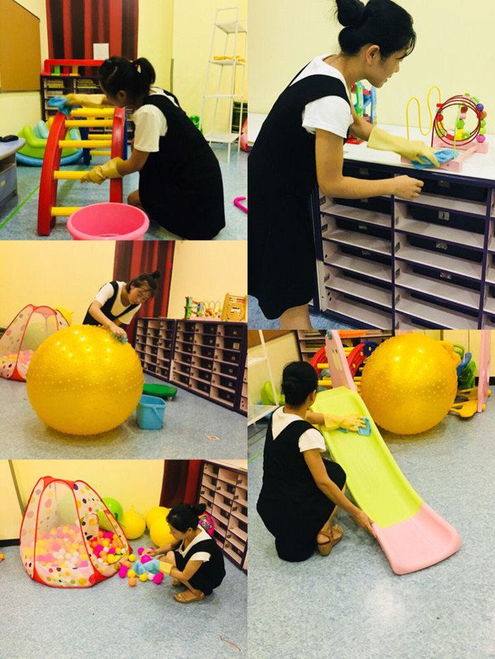 中心是孩子生活與游戲的場所,衛(wèi)生消毒工作是我們衛(wèi)生工作的重點。為了給寶貝們和老師營造一個整潔安全、舒適的環(huán)境,中心建立室內外環(huán)境衛(wèi)生清掃和檢查制度,堅持每天一小掃,每周一大掃。下面請來看看我們老師為中心必做的消毒工作吧!