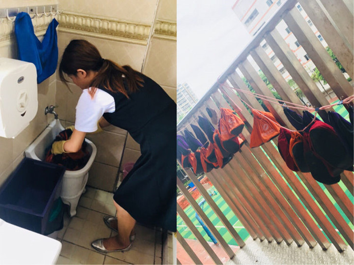 老師對鞋套及時消毒清洗,晾曬。