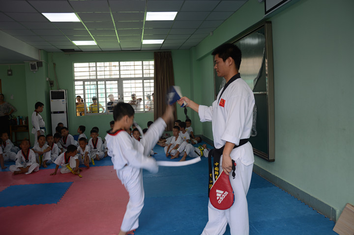 這是幼兒基礎(chǔ)班的小朋友,別看他們年紀小,一招一式一點也不含糊,相信再練幾年,一定會成為一個“武林高手”。