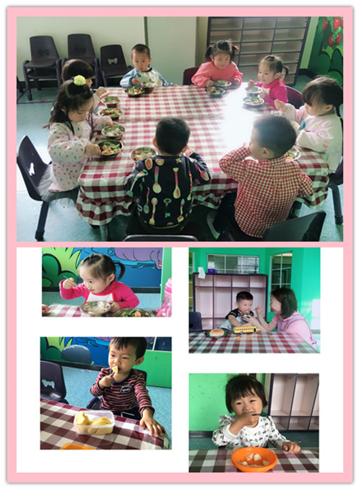 寶貝們剛來的時(shí)候有些寶貝都是要老師喂著吃飯,現(xiàn)在都是自己吃飯,一手扶碗一手拿勺,一口一口的慢慢吃,有時(shí)侯還跟小朋友老師比賽誰吃的多,誰吃的快。