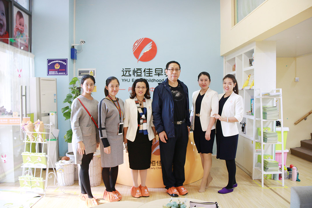 在早教公司負責人劉秋月、部長車家瓊的陪同下,王教授一行首先參觀了遠恒佳早教丹楓雅苑中心。在參觀過程中,中心負責人劉林主任向王教授詳細介紹了中心的運營、教師配置、課程特色和設(shè)備設(shè)施配置等情況。王教授對中心的發(fā)展給予充分肯定,并提出了寶貴的意見和建議。