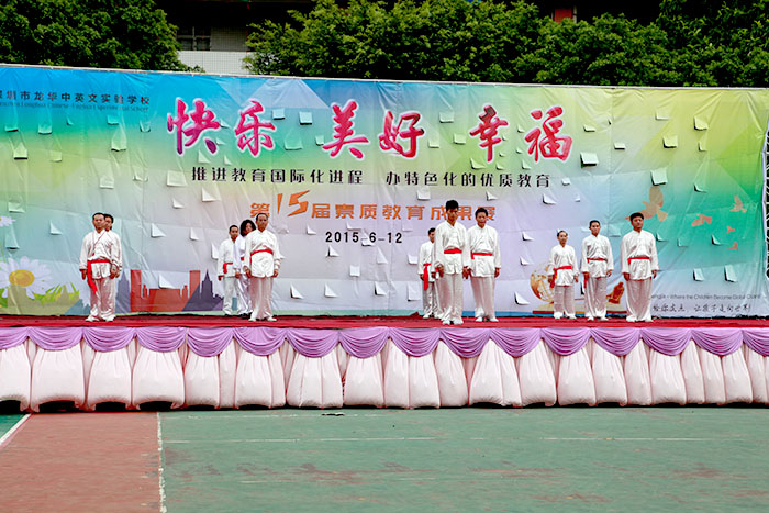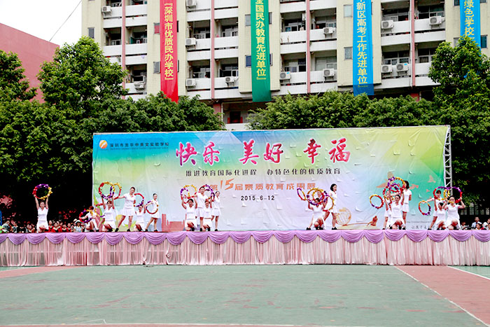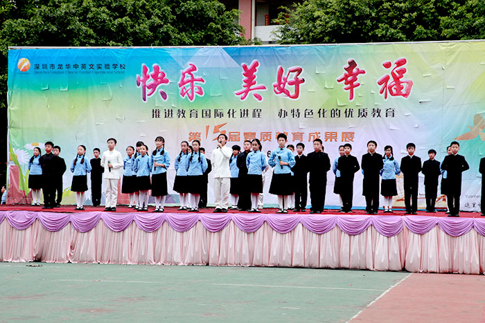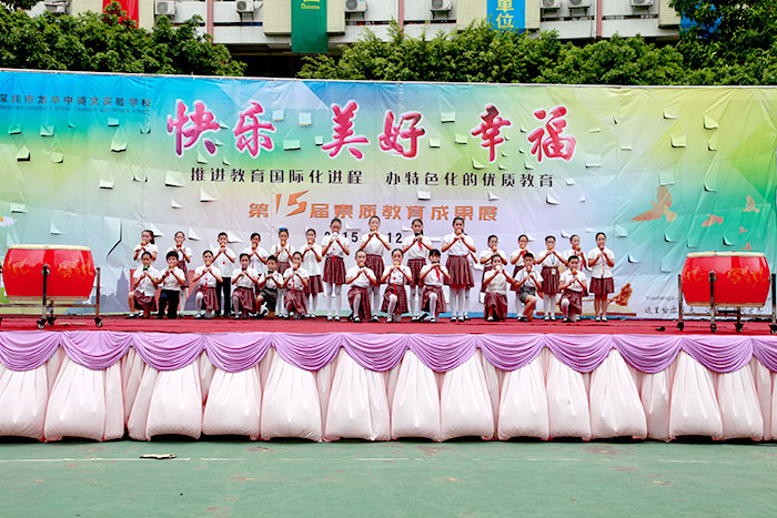 以“快樂、美好、幸福”為主題的龍華中英文實驗學(xué)校第十五屆素質(zhì)教育成果展示活動,于2015年6月12日下午在龍華中英文實驗學(xué)校運動場成功舉辦,在全體演職人員的辛勤努力下,展示活動圓滿成功、精彩紛呈,再次彰顯了學(xué)校學(xué)生“習(xí)慣好、能力強、成績優(yōu)”的素質(zhì)教育特色。