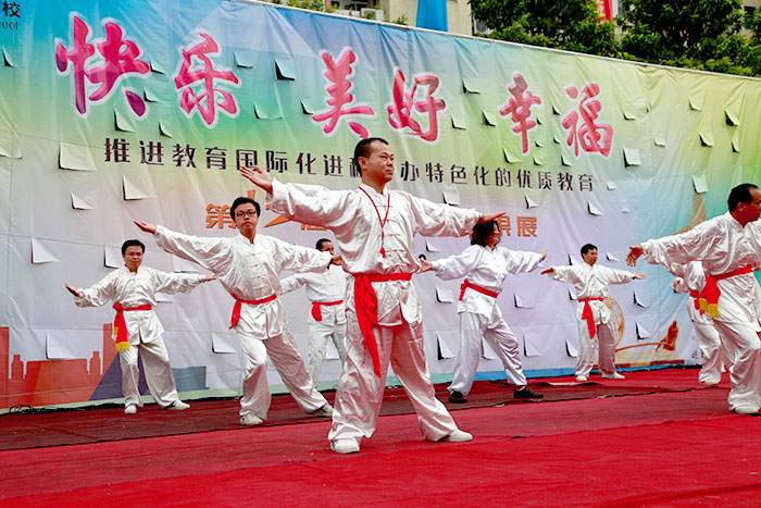 學(xué)校街舞興趣班的《酷炫小子》,初中八年級學(xué)生社團的《閃亮的日子》,小學(xué)部3-5年級及學(xué)生合唱隊的《盧溝謠》,小學(xué)部3-6年級學(xué)生及學(xué)校教工拉丁舞社團的《拉丁旋風(fēng)》,高中全體師生社團的《活力青春》,小學(xué)部4-6年級學(xué)生及廣場舞教工社團的《粉紅色的回憶》等表演大氣磅礴,展現(xiàn)了我校師生“全員學(xué)藝”的靚麗風(fēng)采;舞蹈《時光之光》、《拉丁風(fēng)暴》、《雛鷹展翅》、《爵士串燒》、《舞韻花環(huán)》等舞蹈亮點頻出,精彩紛呈;英語童話劇《森林王國》與英語才藝表演《濫竽充數(shù)》國際范濃厚,體現(xiàn)了我校學(xué)生良好的英語水平和學(xué)校良好的英語特色;歌唱表演《走向復(fù)興》、歌舞《我們的學(xué)校亞克西》、《茉莉花》,學(xué)校原創(chuàng)歌曲《爸爸媽媽你們在哪》,詩詞朗誦《中國少年夢》,啦啦操《 動感節(jié)拍》,健美操《勁舞派對》,教工社團《太極拳》表演、手語表演《幸福永遠(yuǎn)》更是聲情并茂,把活動推向了新的高潮。