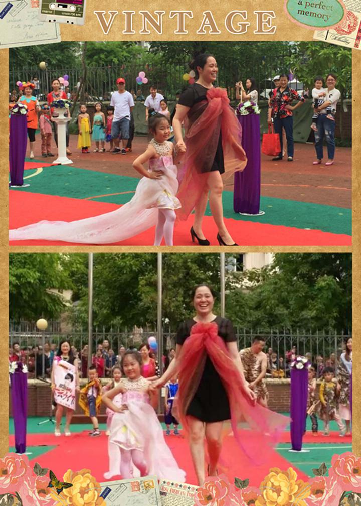 在活動中我們看到,家長、孩子齊動手,紙盒、編織袋、碟片、廢報紙、廣告紙、樹葉、花、藤、餐具、一次性桌布等都成為時裝的主要“面料”。真的是構(gòu)思巧妙、別具匠心!家長和孩子們穿著自己用廢舊物品制作的一套套造型迥異的環(huán)保時裝,全面展示自信與快樂,每個人都擺出了自己最帥的造型。他們的精彩表演給大家?guī)砹艘粓隽钊穗y忘的視覺盛宴。