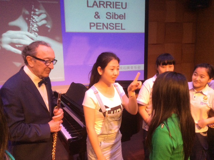 長(zhǎng)笛是現(xiàn)代已知的樂(lè)器家族中最古老的成員之一,其音色柔美清澈,音域?qū)拸V,演奏技巧華麗多樣。2015年4月22日晚,法國(guó)長(zhǎng)笛大師馬克桑斯·拉厄爾和西貝爾·潘瑟在深圳大學(xué)師范學(xué)院音樂(lè)廳巡演,深圳市龍華中英文實(shí)驗(yàn)學(xué)校組織初中實(shí)驗(yàn)班學(xué)生親臨現(xiàn)場(chǎng),享受了這次音樂(lè)大餐,進(jìn)行了一次心靈與長(zhǎng)笛的親密對(duì)話。